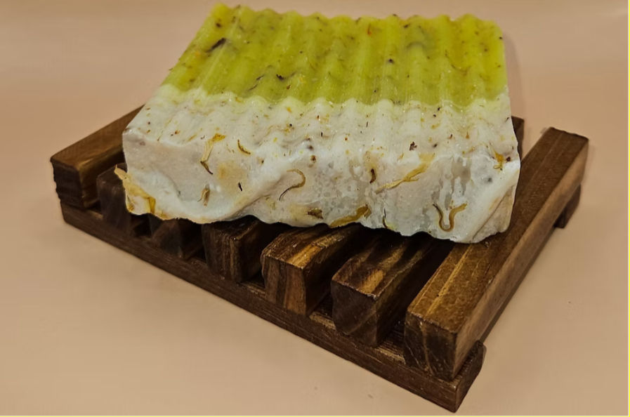 This is a very rich Avocado Oil based soap, with coconut, palm, castor oils, and a butter. Two citrus and geranium essential oils. I add Calendula to aide in moisturizing dry and cracked skin. Calendula has so many great benefits for the skin, like preventing bacterial growth and soothes skin. Let's talk about Avocado oil in soap, The antioxidants in avocado oil may help to ease the symptoms of sunburn, essential fatty acids in the oil can support healing and soothe the skin. Avocado oil may help to heal the dry, irritated, and flaky skin associated with eczema and psoriasis. Castor Oil has many benefits on skin, Promoting the production of elastin and collagen, helping to delay the appearance of wrinkles and fine lines. Reducing acne-causing bacteria, making castor oil soap a unique blend of moisturizing, cleansing, and health benefits. Hydrating the skin and preventing wrinkles. Preventing the growth of viruses, bacteria, and yeast molds thus reducing skin inflammation. This is a 5 oil soap with AVACADO (wonderful skin care advantages such as a high content of vitamin A, D and E) MANGO (rich in carotenoids and antioxidants, provides supple, rejuvenating moisture for the appearance of firmer, healthier looking skin) CASTOR (it's easily absorbed by skin to help moisturize the skin). This soap is scented with ORANGE EO ( Orange oil, like other citrus oils, comes from the peel of the fruit, and research shows that orange peel contains even higher levels of vitamin C than the fruit itself! This means that orange essential oil is also very beneficial for fighting signs of aging like wrinkles and dark spots since its high vitamin C content means it can help promote the production of collagen.). GERANIUM EO (reputed to effectively eliminate dead cells, tighten the skin, promote the regeneration of new skin, and diminish signs of aging) GRAPEFRUIT EO antioxidant and bacteria-fighting properties heal existing acne and protect against future breakouts Rich in vitamin C antioxidants, grapefruit oil calms inflammation, promotes collagen production, and increases cellular turnover to unclog pores.) CALENDULA is added for exfoliation and helps prevent dermatitis and skin inflammation.